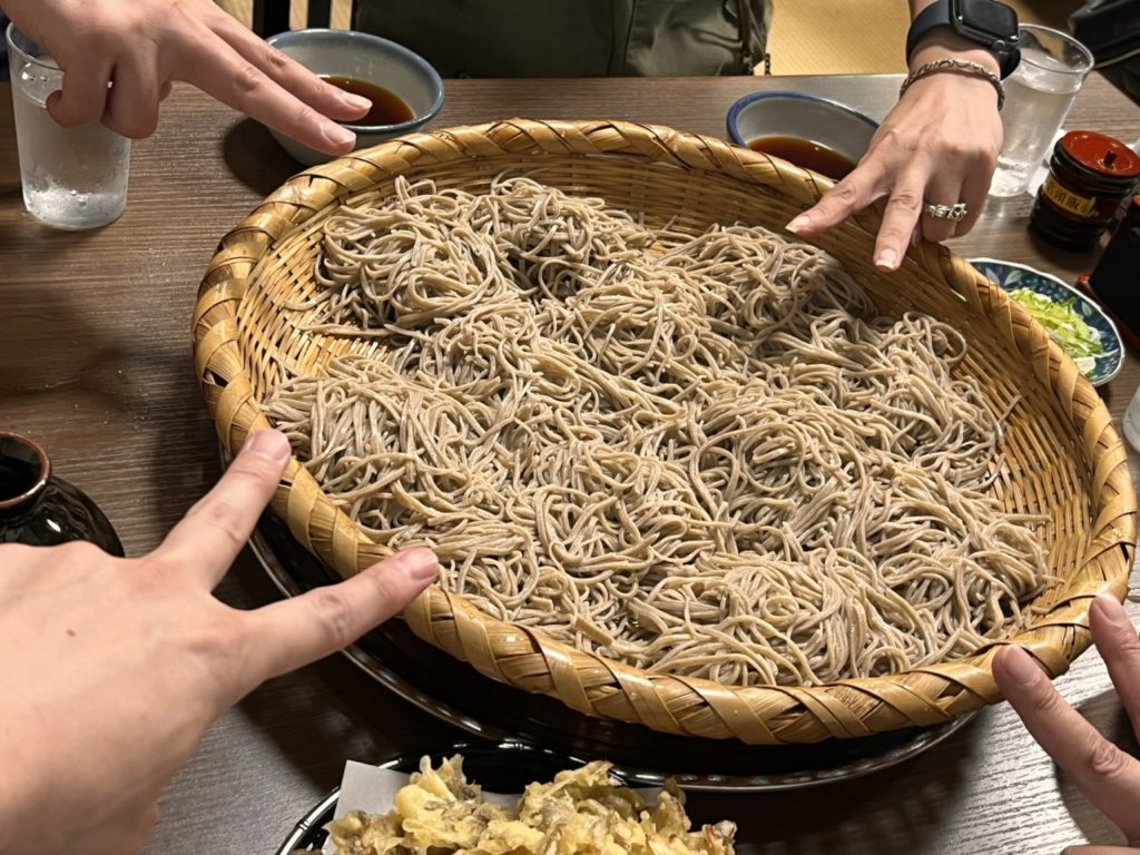 まいたけ天ぷらは1つ頼むと5個!しかも1個がかなり大きい。私たちは4人で8号そばを注文しましたが、ボリューム満点で大満足。他のテーブルでも蕎麦が運ばれるたびに「おぉぉぉ!」と歓声が上がっていました。